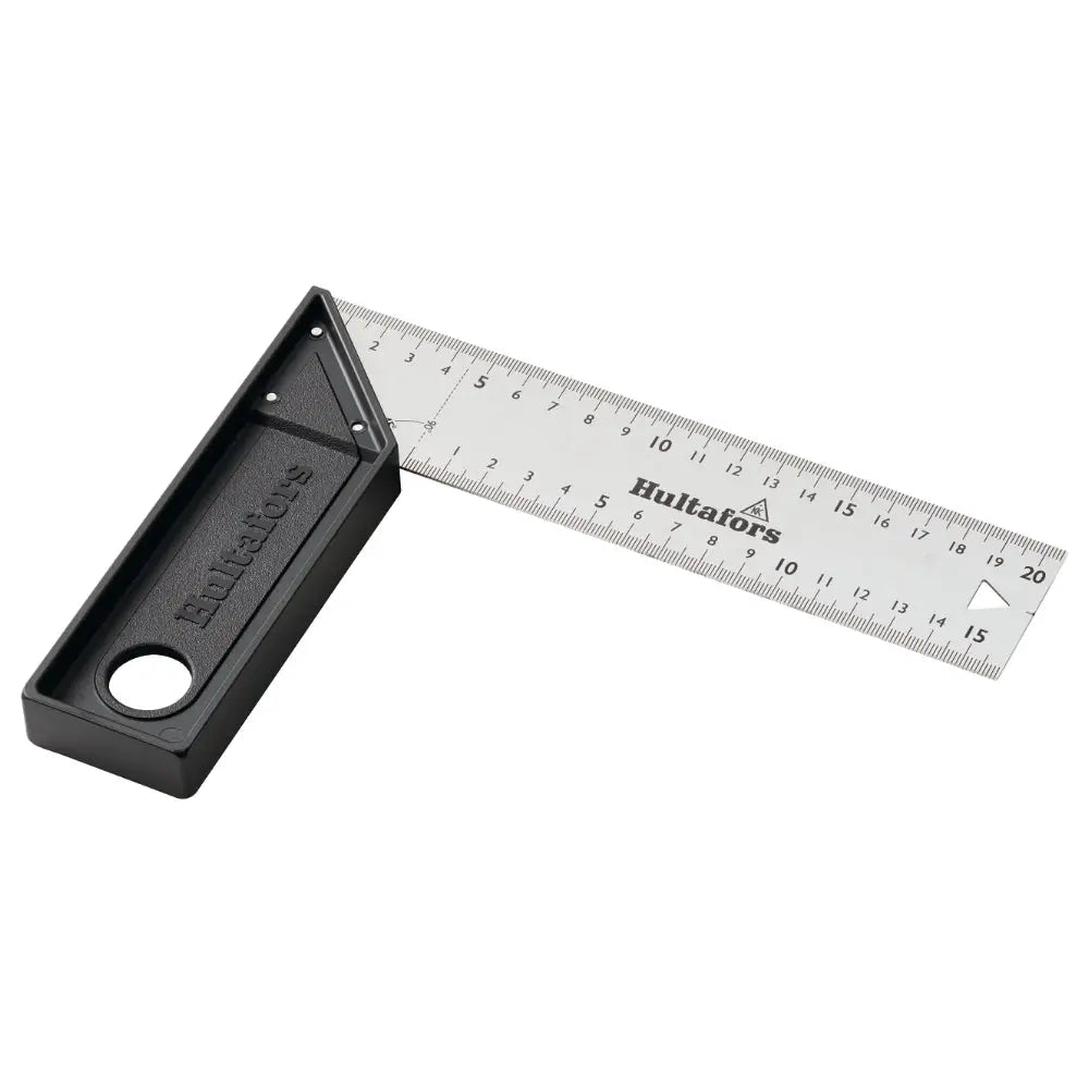Vinkelhake utvecklad för att vara både lätt och hållbar. Utmärkt för dig som ofta bär med dig en vinkelhake i fickan. Bladet är 45 mm brett för att passa arbete med vanliga regelbredder. Specialnitar och ett blad av 1 mm tjockt, höghållfast rostfritt stål ger en väldigt tålig konstruktion som håller länge och tål tuffa arbetsmiljöer. Ett blad skuret med precisionslaser och nitar med väldigt små toleranser ger hög precision; vinkeltolerans ±0,06° (±1 mm/m).