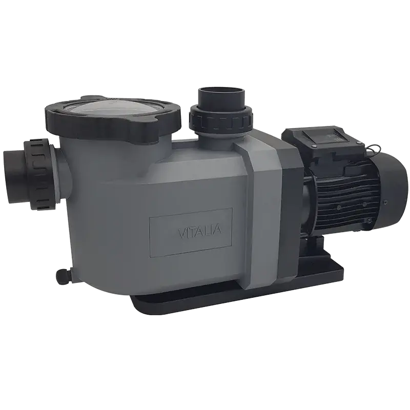 Denna modell av VITALIA COMFORT är en kraftfull, kompakt och tyst enfaspump med en flödeskapacitet på upp till 9 m³/h, perfekt för mindre och medelstora pooler. Tillverkad i tåligt material som klarar både saltvatten och poolkemikalier.