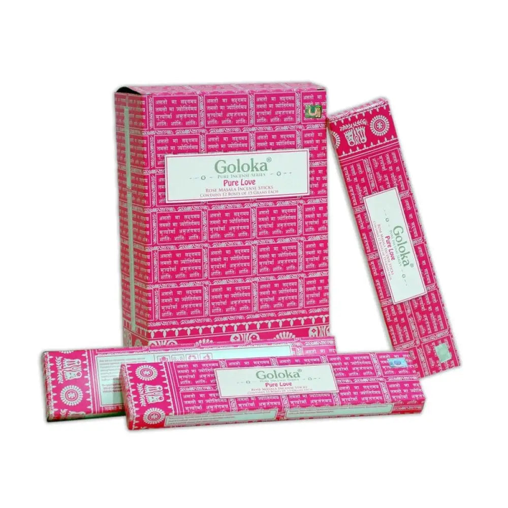 Goloka Pure Love Rökelse är en handrullad, naturlig rökelse från Indien, skapad för att ge en värmande och harmonisk atmosfär. Denna rökelse kombinerar resin, oljor, blommor, honung och örter för en mjukt blommig och avslappnande doftupplevelse.