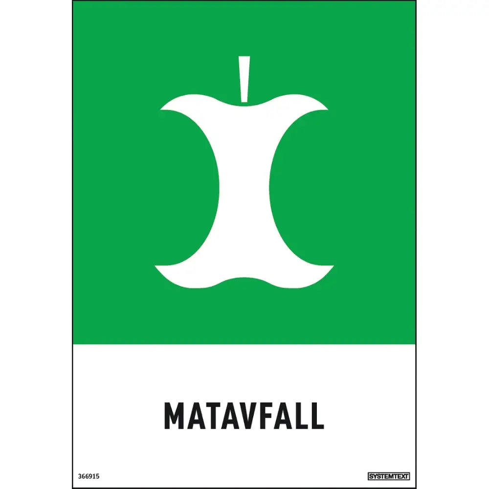 Skylt Matavfall. Tillämpning: Vägg. Material: Dekal. Yta: Tryck.