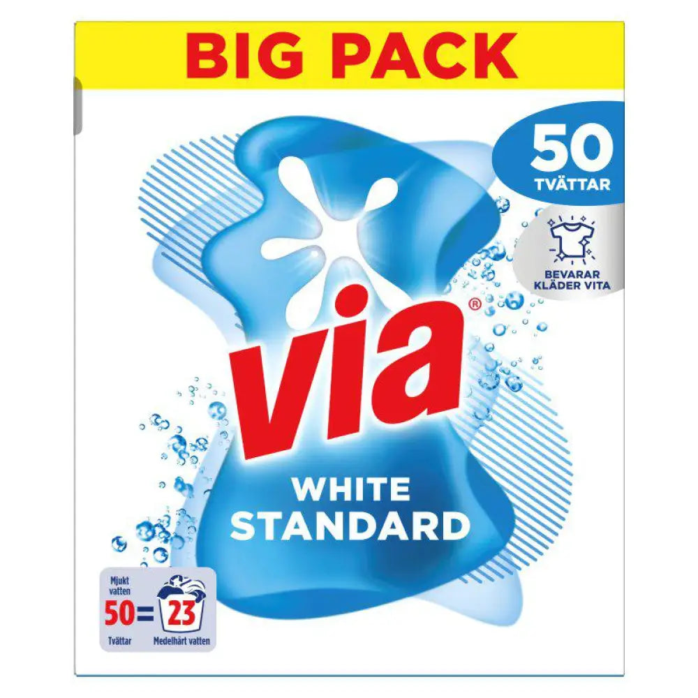 Via Tvättmedel White Pulver ger dina vita kläder ett fräscht och strålande resultat tvätt efter tvätt.