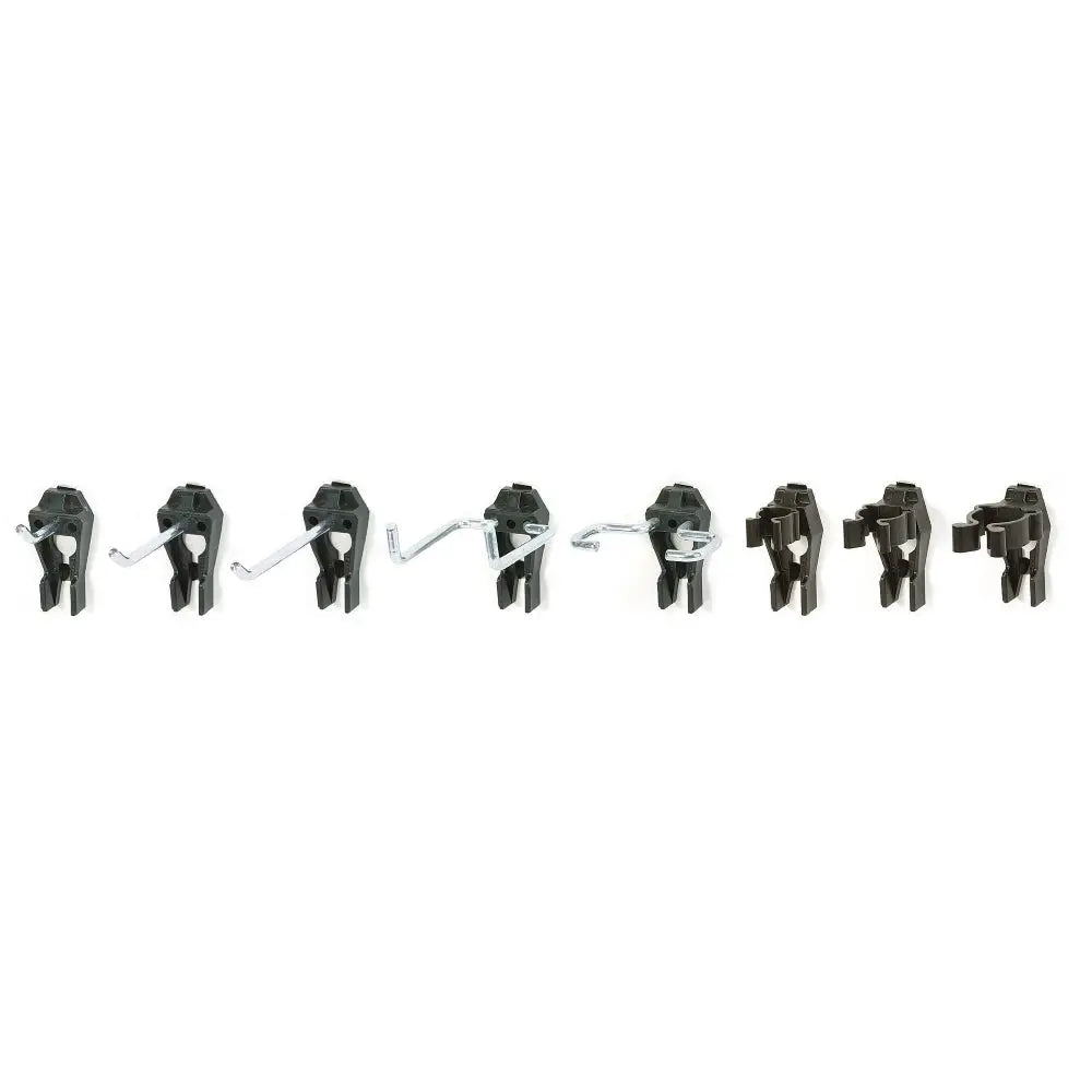 Påse med de 14 vanligaste clipsen till Raaco verktygsvägg. Innehåller 3 st clips 1 enkelkrok 30 mm, 1 st clips 1 60mm, 1 st clips 1 90 mm, 1 st clips 4 hammarhållare 50 mm, 2 st clips 5 tånghållare 20 mm, 3 st clips 6 fjäderklämma 12 mm, 2 st clips 6 18 mm, 1 st clips 6 24 mm.