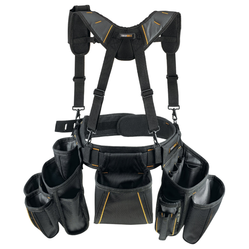 ToughBuilt verktygsbälte Pro Framer Suspension Rig är byggd för proffsen. Dess innovativa struktur har fickor förstärkta med plastväggar som inte kollapsar framåt och förhindrar att verktyg faller ut. Fickorna är alltid vidöppna vilket gör dina verktyg lättare att både se och komma åt även med handskar.
