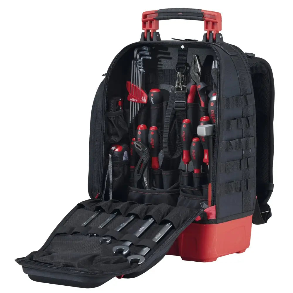 Hantverkarryggsäcken ger oändlig frihet tack vare sina skyddade förvaringsmöjligheter. Facksystemet gör att det går att organisera verktygen översiktligt och ta ut verktygen på ett enkelt sätt. Om man öppnar ryggsäcken till en tredjedel finns även en smidig möjlighet att snabbt komma åt verktygen. De totalt 77 förvarings- och 30 flexibla fastsättningsmöjligheterna ger möjlighet till skräddarsydda lösningar med ytterligare verktyg och tillbehör. Den robusta bottenplattan på ryggsäcken gör att den står stadigt och säkert när den är öppen. Den klarar dessutom våta och smutsiga arbetsförhållanden väl tack vare det motståndskraftiga materialet.