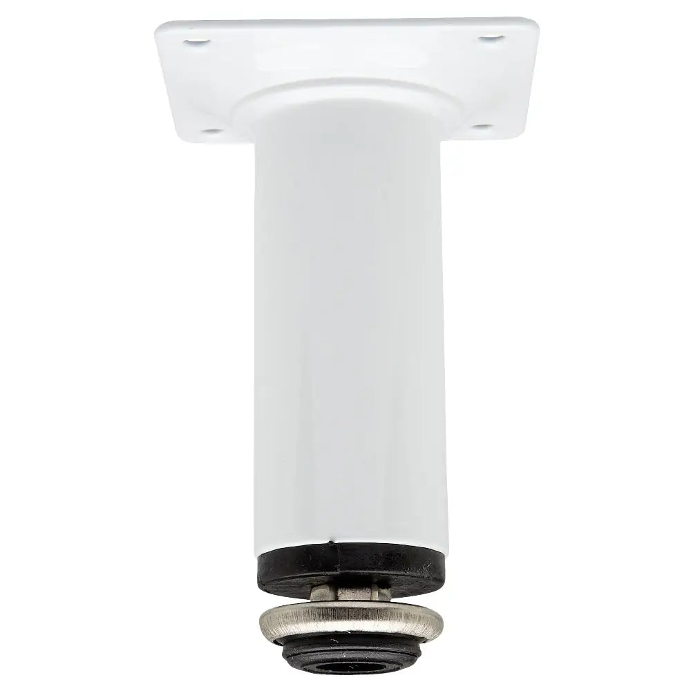 Möbelben av runt stålrör Ø 30 mm. Justerbar 15 mm i höjd. Monteringsplatta 60x60 mm med c/c mått 45 mm mellan skruvhålen. Ytbehandling: Vitlackerad.