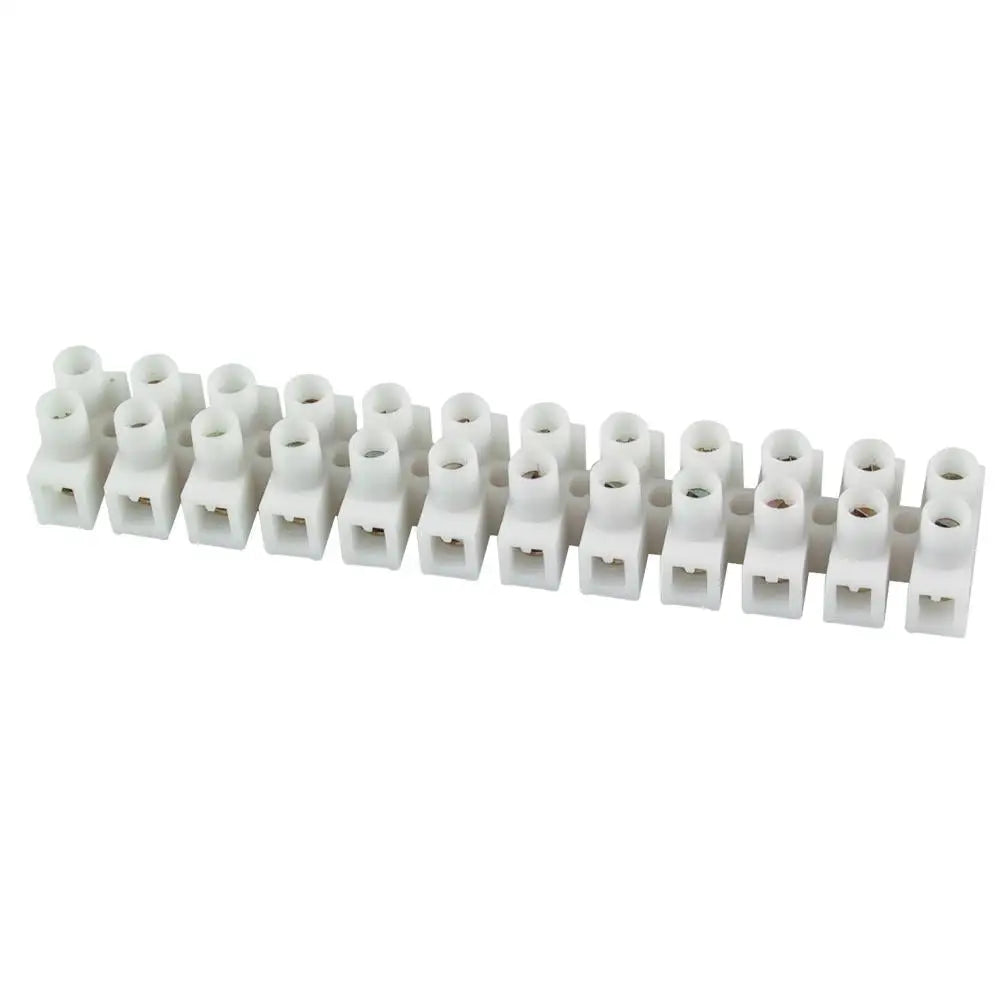 Isolerhölje av vit polyetylen, flamskyddat. 12-poligt utförande. Blåkromatiserad stålskruv och inläggshylsa av obehandlad mässing. 400V. CE-märkt. 12-polig. 12 st delbara klämmor. SB-förpackad.