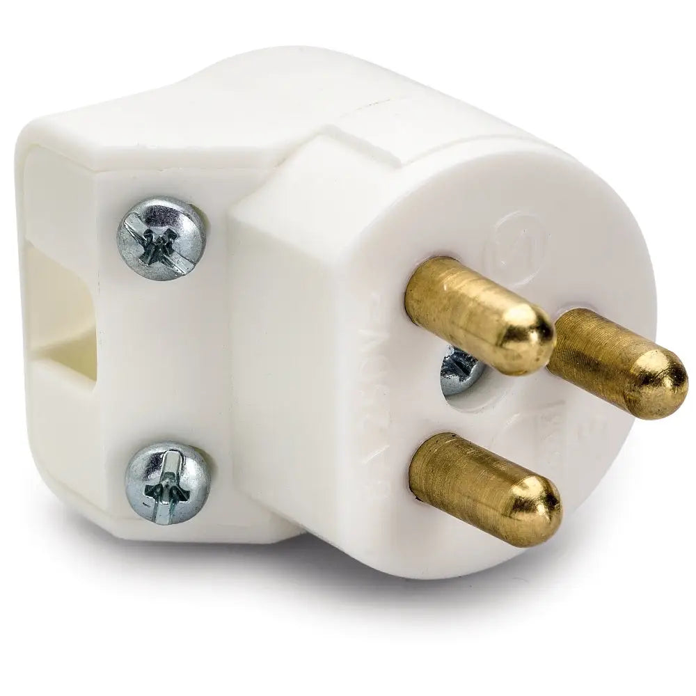 Med skruvanslutningsklämmor och dragavlastning. Sidointag. Vit termoplast. SB-förpackad.