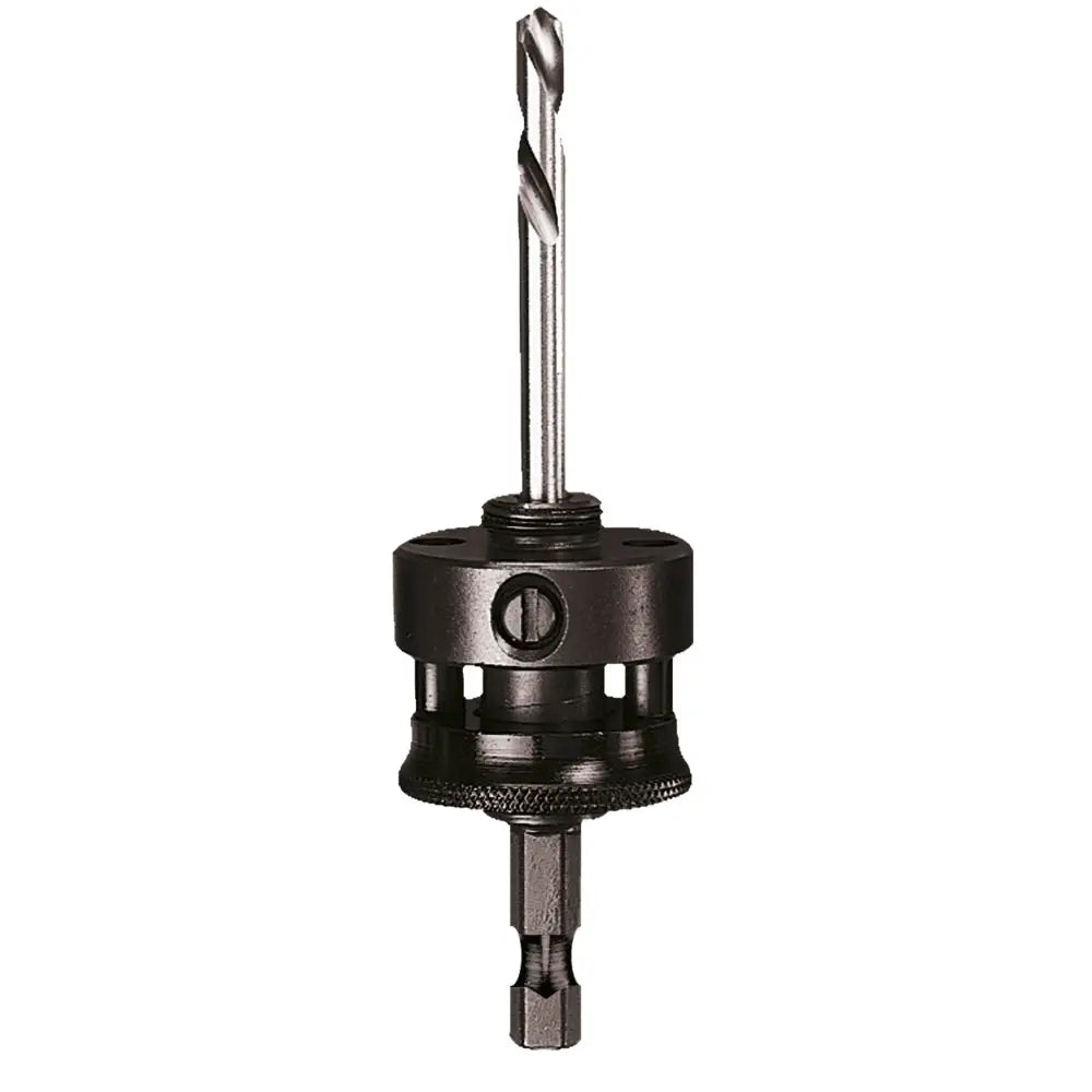 Adapter levereras med förlängd 6,35 mm pilotborr. Quick-Hitch adaptern har två lokaliseringsstift insatta i hålsågslocket för att förhindra att hålsågen drar åt för hårt på skruvgängan. Detta möjliggör enkla och omedelbara byten av hålsåg, utan verktyg och utan att ta bort spindeln från chucken.