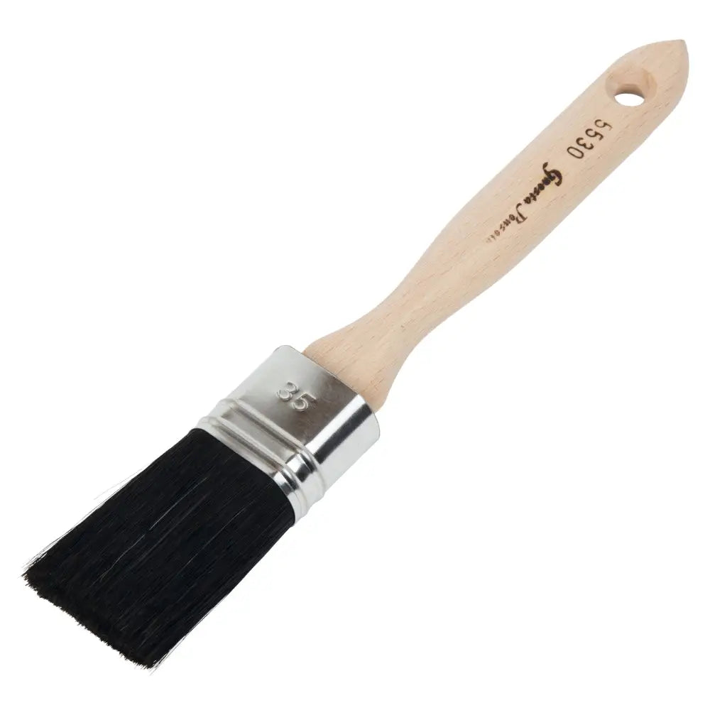 Oval allroundpensel i svinborst av högsta klass. Mycket lämplig för strykning av snickerier så som pärlspont, lister m.m. De mindre storlekarna är lämpliga som alternativ till fönstermålning när man inte är bekväm med de runda penslarna. De större storlekarna är utmärkta för målning av stora ytor som t.ex. fasad och golv. En pensel med bra motstånd som gör det lätt att stryka ut linoljefärgen.