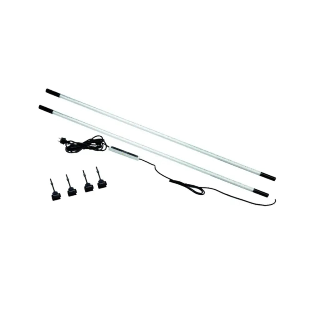 2 st 120 cm långa LED diodlysrör med tillhörande 20W strömförsörjningsenhet, 8 m kabel och kompletta monteringstillbehör. Medföljer clips att skruva fast. Som extra tillbehör finns även kraftiga flyttbara neodym magnetclips