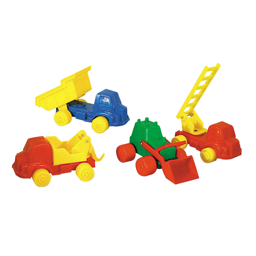 Olika varianter av arbetsfordon i plast för barn. Passar för lek och bus både inne och utomhus. Svensktillverkat.