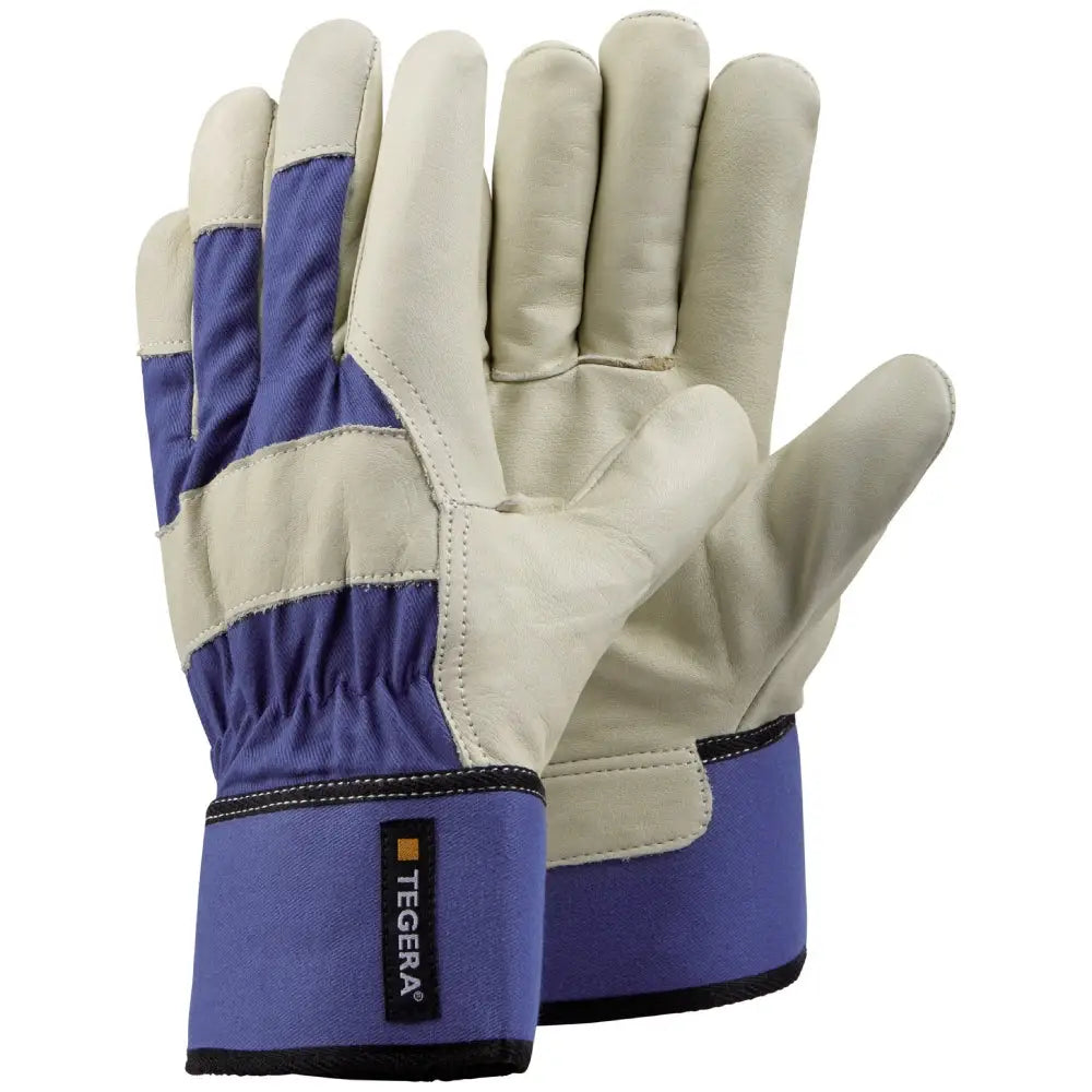 Läderhandske, halvfodrad, 1,0-1,1 mm nötnarv, bomull, jersey, förstärkt pekfinger, förstärkta fingrar och tumme, för grövre arbeten. Kat. II EN388 3121.