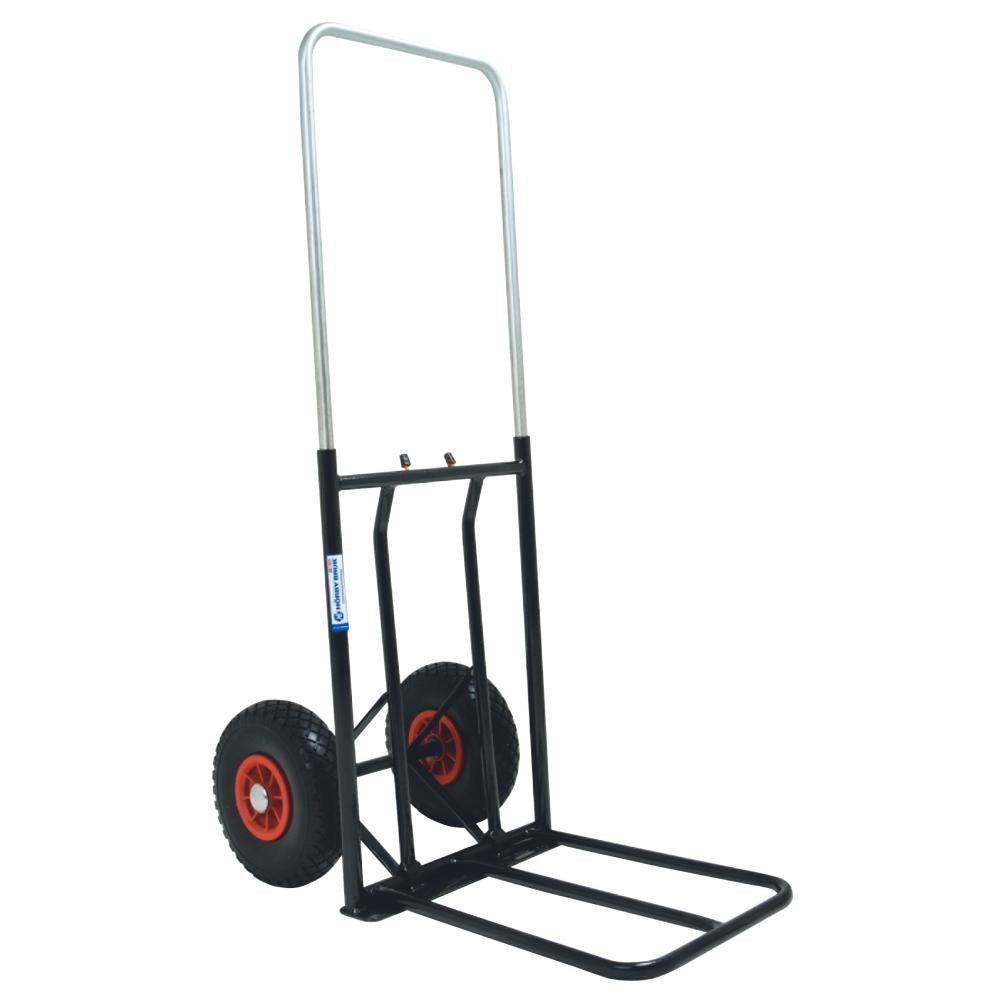 Hopfällbar kärra med lastplattform D460 x B350 mm. Lastförmåga 150 kg. Hjulutrustning: 2 st punkteringsfria hjul 260 x 85 mm glidlager. Mått hopfälld: D350 x B420 x H730 mm. Största mått: D350 x B420 x H1165 mm. Lastkniv: D40 x B415 mm. Vikt: 8,5 kg.