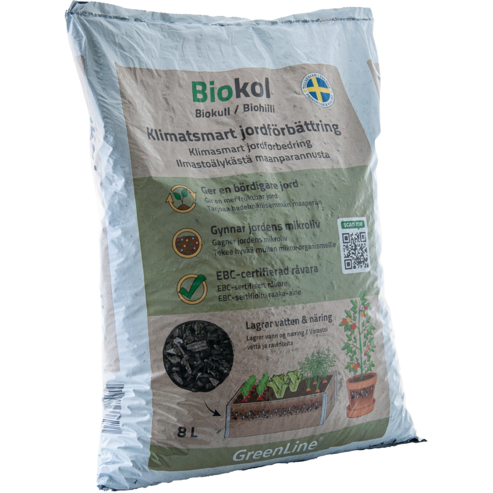 - GreenLine Biokol är ett klimatsmart jordförbättringsmedel som när det grävs ned i jorden blir en stabil kolsänka som bidrar till att minska koldioxidutsläppen.