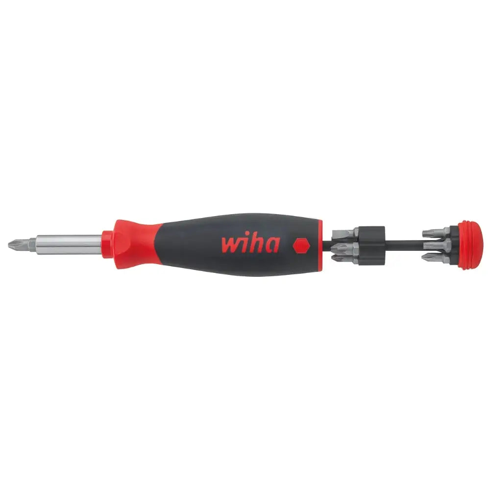 Den kompakta och lätta PocketMax från Wiha får enkelt plats i skjort- och byxfickor och är den perfekta följeslagaren för hantverkare. I den säkra bitsdepån i handtaget finns åtta standardbits 1/4" C 6,3 som både kan användas för skruvning för hand och med skruvdragare. Tack vare den magnetiska stängningen kan bitsdepån enkelt öppnas när man vill ta ut bits. Du behöver aldrig mer slösa tid på att leta rätt på den bits du söker. När du stänger den glider bitsdepån enkelt tillbaka i skaftet och försluts med magneten. Med den magnetiska bitshållaren kan bits bytas ut snabbt och enkelt. En annan fördel är det vridbara locket som gör hanteringen bekväm.