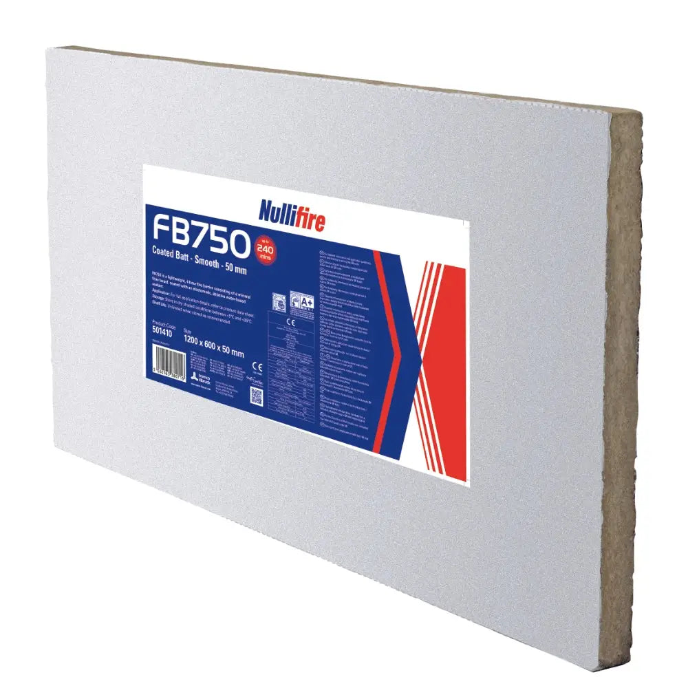 Nullifire FB750 är en lätt fyra timmars brandskyddsskiva som består av en mineralfiberskiva bestruken med en unik tätande och skyddande vattenburen beläggning.
