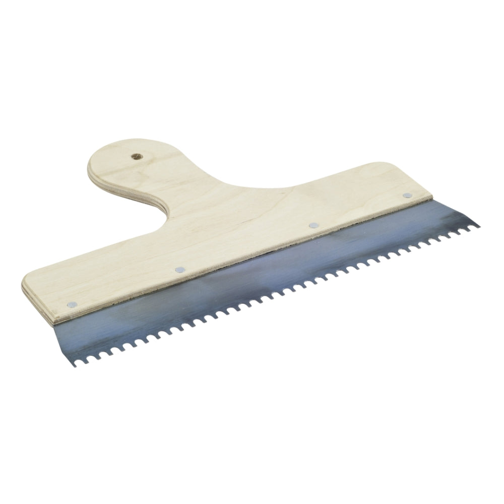 Plywoodhandtag med blad av stål. 3-6 mm rundtandning. För applicering av bl.a. lim, fix och fästmassa.