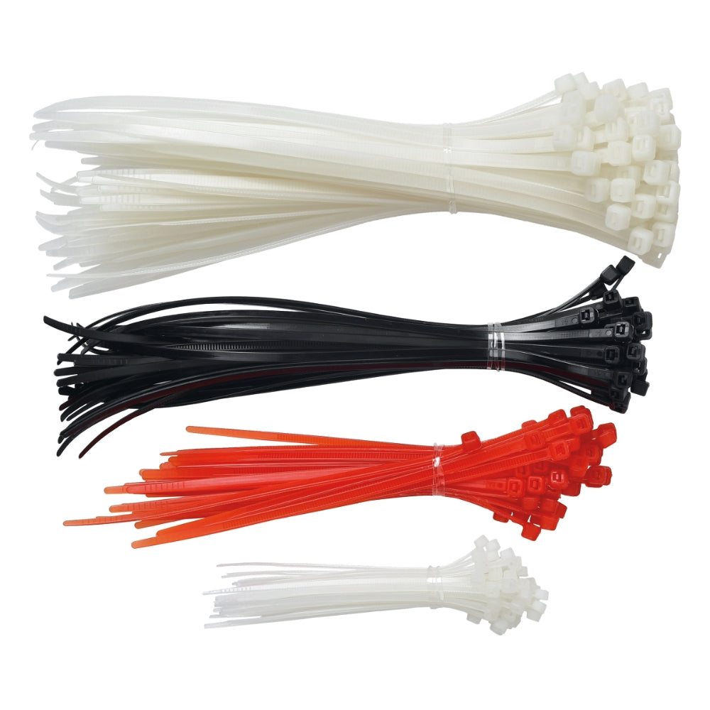 Svart buntband är uv-skyddat och de röda och vita buntbanden är för inomhusbruk.