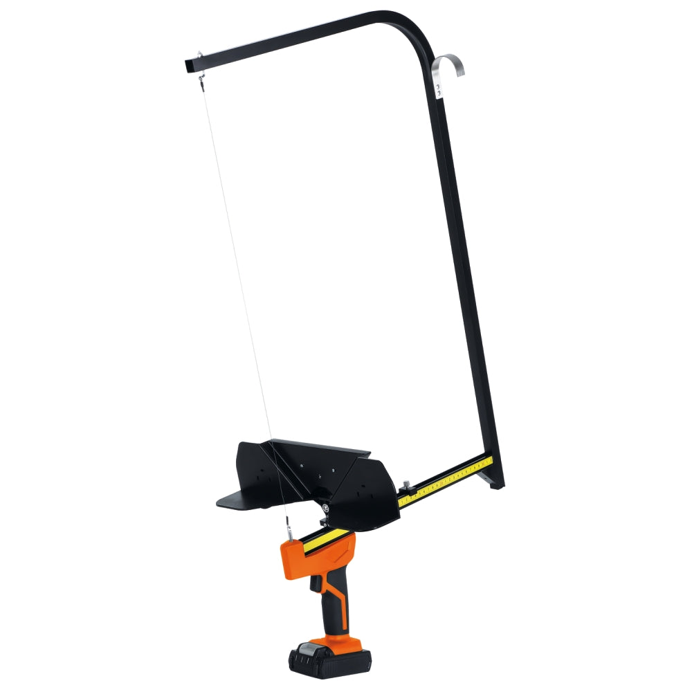 Total kaplängd är 630 mm och höjd från tråd till undersida båge 310 mm. Levereras i mjuk nylonväska med foam inredning med laddare och 1 st Li-ion batteri : 18V - 2,0 Ah. 3 st extra värmetrådar följer också med och finns även som tillbehör.