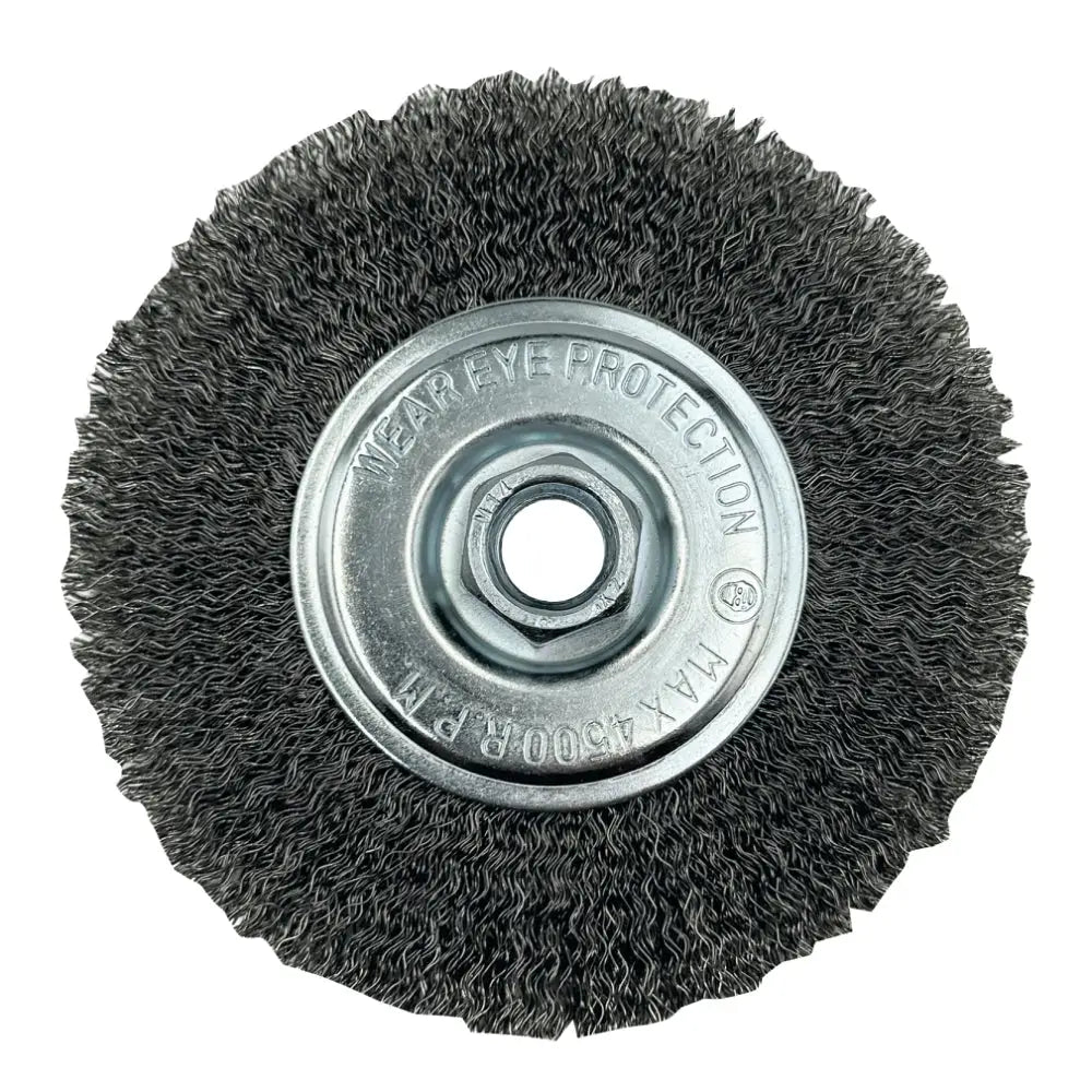 Cirkulär stålborste för snabb rengöring av metall, rostfritt stål och andra metaller.