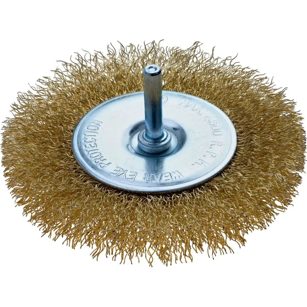 Cirkulär stålborste vågig för borrmaskin med 6 mm hållare.
