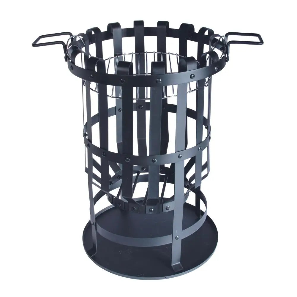 Eldkorg/grill och eldstad i ett. Kan eldas med kol, briketter eller ved. Av lackerad plåt. Levereras omonterad.