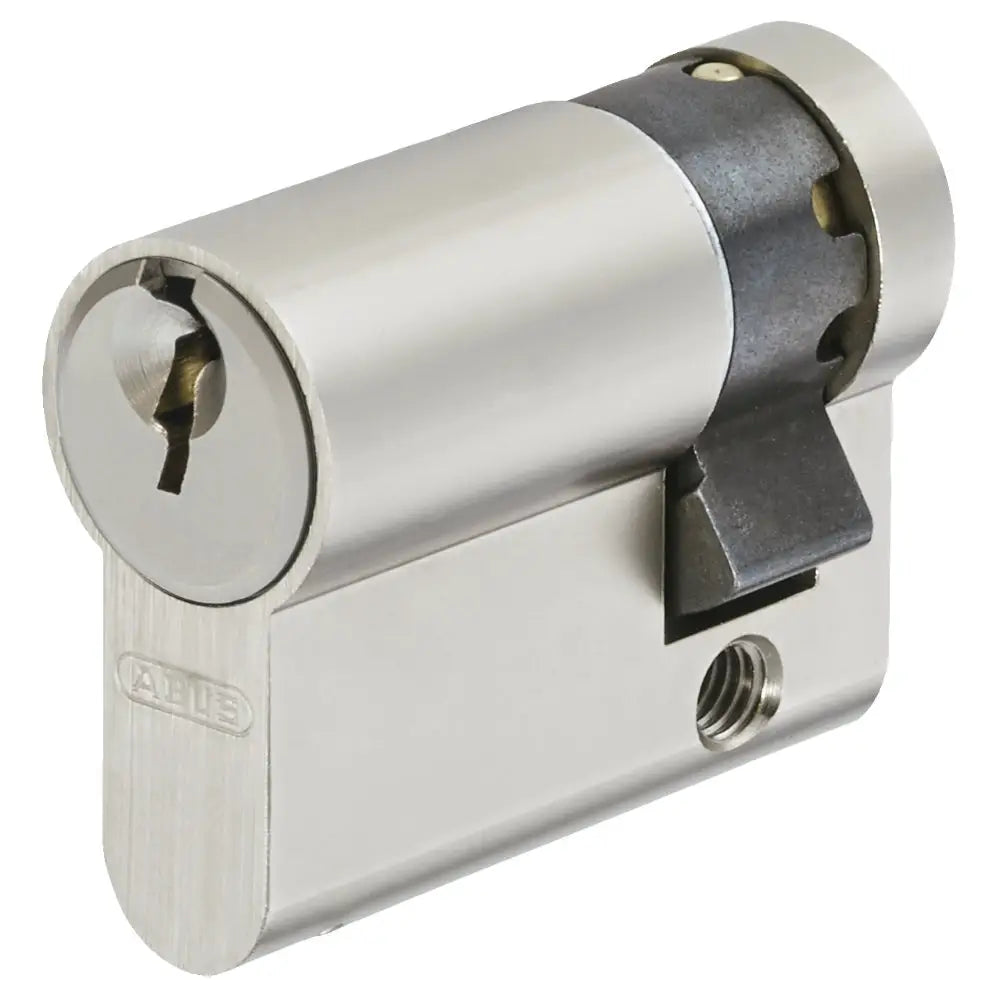 Enkel- eller dubbelcylinder (dubbelcylinder har nyckelinsättning från båda håll, insida och utsida). Monteringsskruv ingår. Borrskydd. Testad enligt DIN EN 1303.