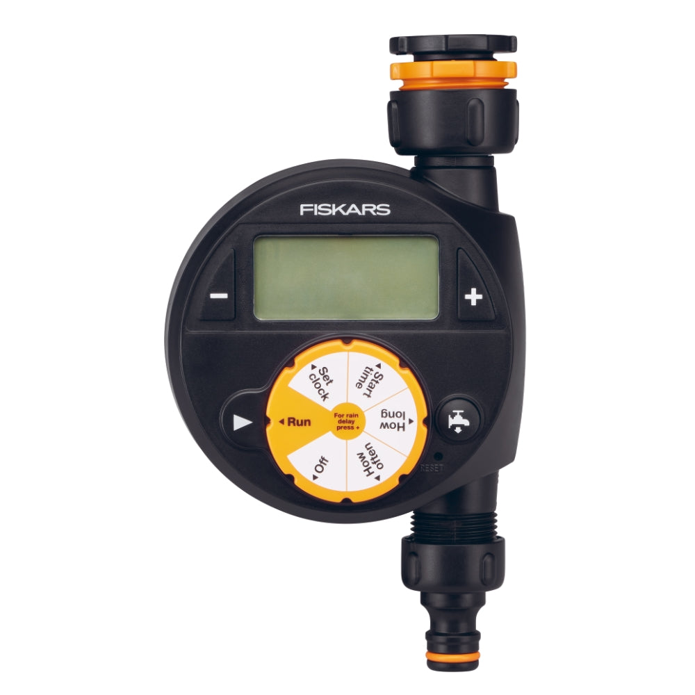 Tids- och vattenbesparande timer med 1-vägskoppling för bevattning av trädgårdar och gräsmattor.
