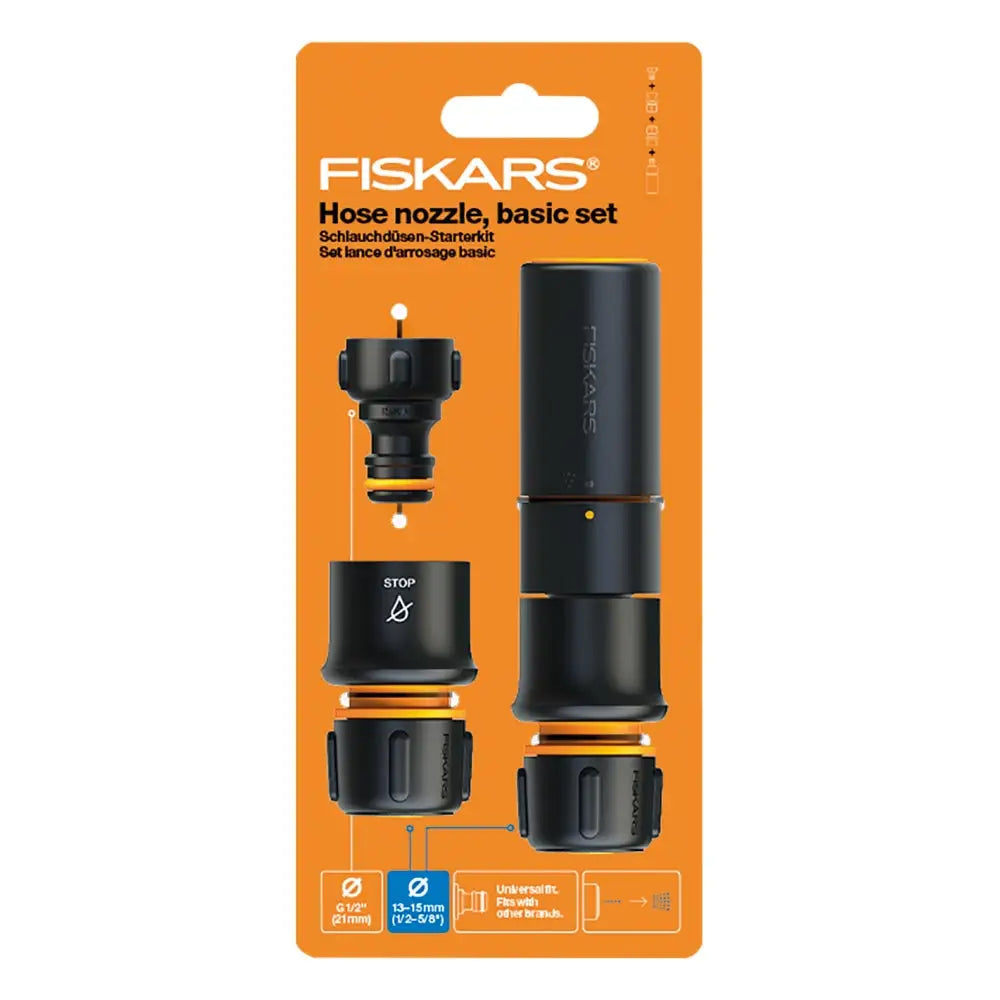 Fiskars Startset Basic innehåller allt du behöver för att komma igång med bevattning. Setet inkluderar sprutmunstycke, krankoppling och slangkopplingar, vilket ger en smidig och enkel anslutning till din trädgårdsslang.