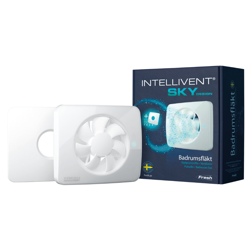 Badrumsfläkt med fukt, ljus och luftkvalitetssensor.
