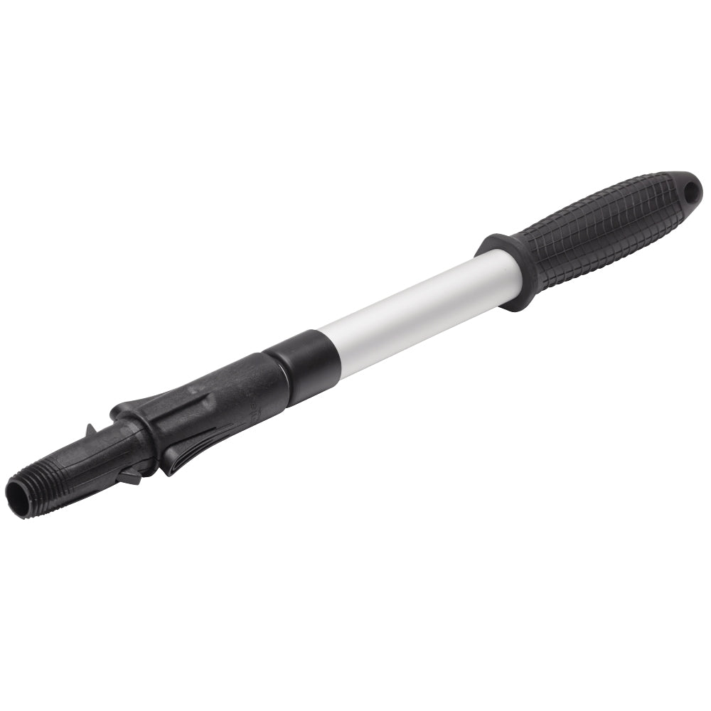 Tvådelat förlängningsskaft i aluminium med ergonomiskt handtag och klickkona. Ett mycket bra val för vägg-, golv- och takmålning. Passar alla Anzas förlängningsbara produkter.
