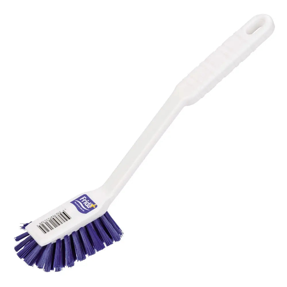 Diskborste Frida har ett hållbart plastskaft och är utrustad med en praktisk skrapa. Borsten är tillverkad av polyester, vilket gör att den tål hög värme och är perfekt för rengöring av både tuffa fläckar och ömtåliga ytor. En mångsidig och hållbar diskborste som gör disken både enklare och mer effektiv, och tål användning vid både högre temperaturer och intensiva rengöringsuppgifter.