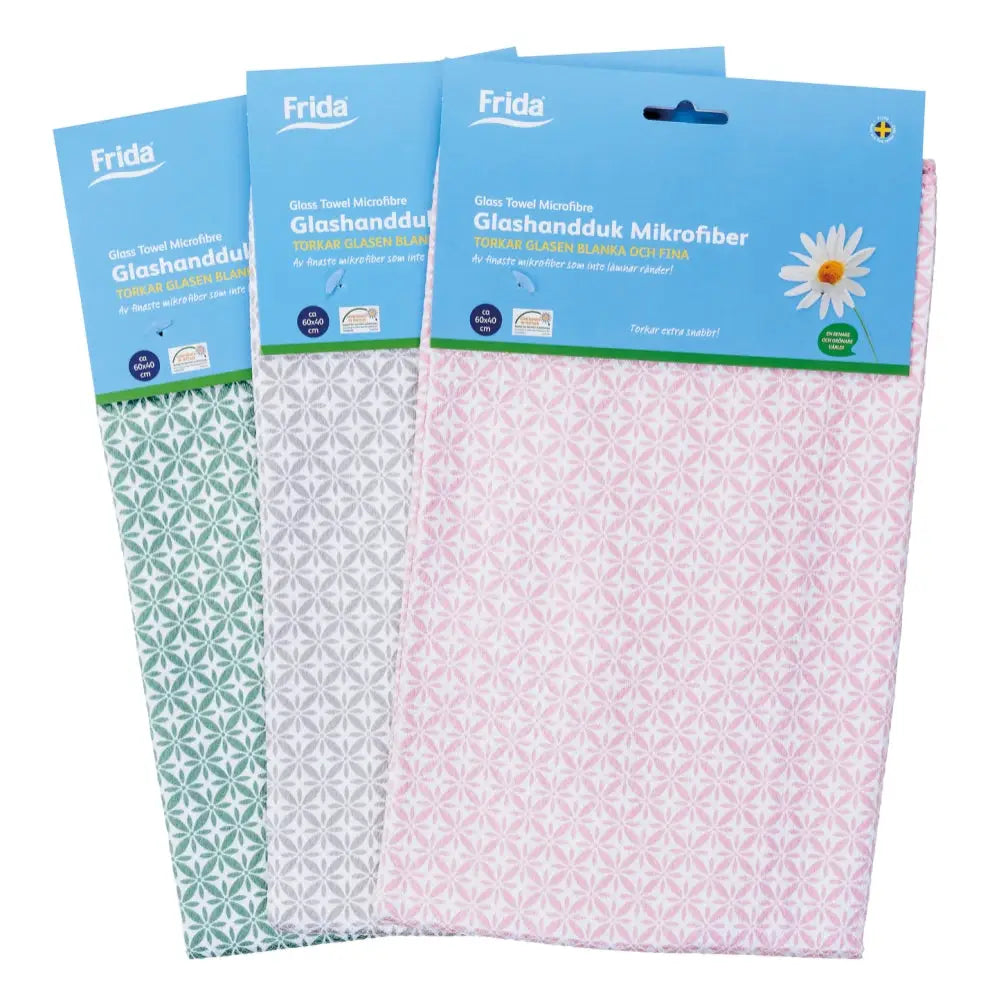Glashandduk mikrofiber Frida är en högkvalitativ mikrofiberduk som är utmärkt för torkning av glas och andra ytor där du vill ha en glänsande och fläckfri finish. Den torkar snabbt och effektivt, vilket gör den perfekt för användning på glasytor som fönster och speglar, samt för att putsa diskbänken och andra ytor där du vill uppnå en ren och polerad effekt. Handduken finns i sorterade färger och är en praktisk och snygg lösning för ditt hem.