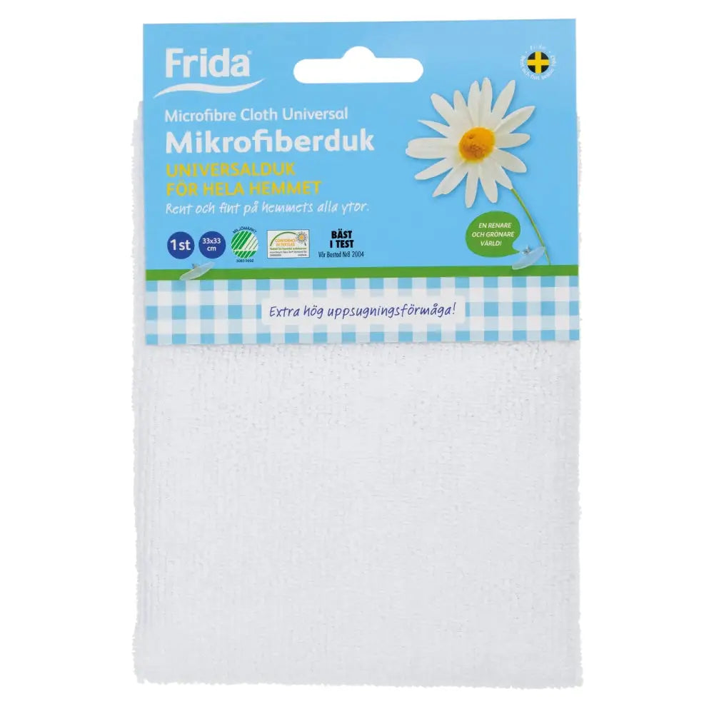 Mikrofiberduk Universal Frida är en effektiv och miljövänlig rengöringsduk som kan användas på alla ytor utan behov av kemikalier. Den kan användas både torr och våt för bästa resultat. Duken är Svanenmärkt och har visat sig vara bäst i test för sin förmåga att rengöra effektivt. Den har hög uppsugningsförmåga och fångar smuts, damm och vätska på ett snabbt och enkelt sätt. Duken kan tvättas i 60 grader och är ett hållbart och miljövänligt alternativ för både hemmet och kontoret.