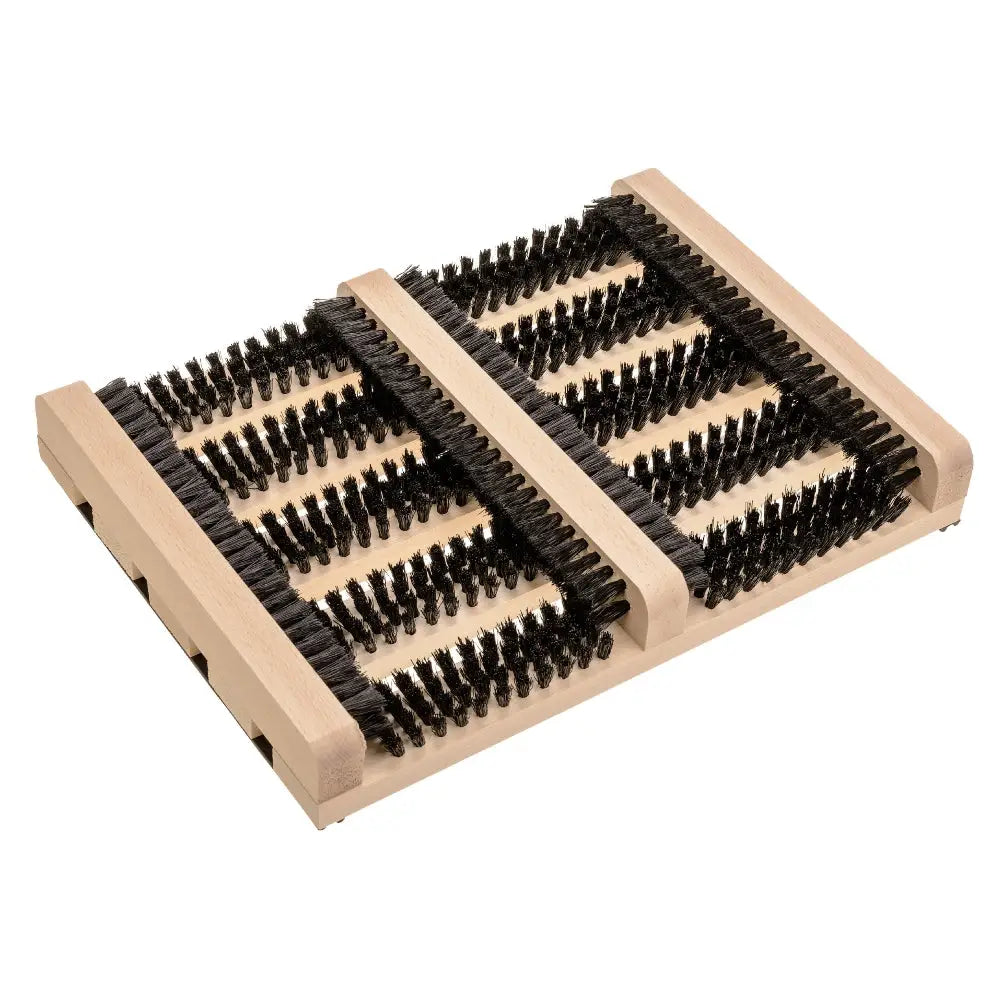 Skoskrapa Trä Frida är en praktisk och hållbar skoskrapa med sidor av trä och borst i polypropylen. Den är designad för att effektivt ta bort smuts och lera från skor både inomhus och utomhus. Skoskrapan är lätt att använda och perfekt för att hålla golv och entréer rena. Den robusta konstruktionen gör att den håller länge och är ett utmärkt hjälpmedel för att hålla skorna rena och torra innan man går in i hemmet.