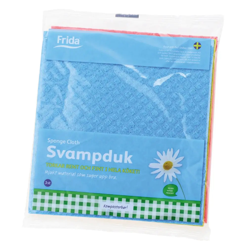 Svampduk Frida är ett set med tre våta svampdukar tillverkade av ren cellulosa och bomull. Dessa duka är perfekta för att rengöra och absorbera smuts och vätska på ett effektivt sätt. De är både hållbara och miljövänliga, vilket gör dem till ett bra val för hushållet.