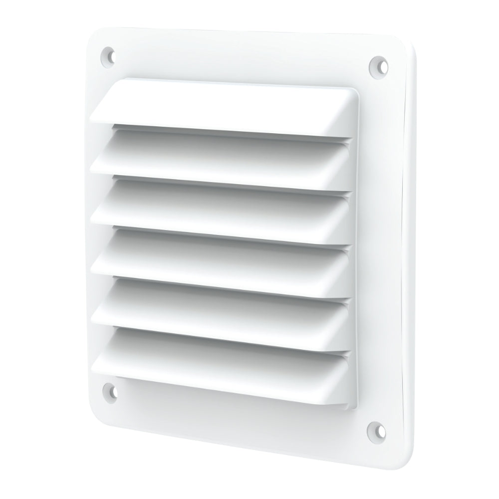 Skruvhålens hålbild passar täckplatta 18 och 20. Försett med snäppfäste till Fresh vägggenomföringsstosar. Kan förses med insektsraster 150. Gallret tillverkas i PP (polypropen) med låg miljöpåverkan.