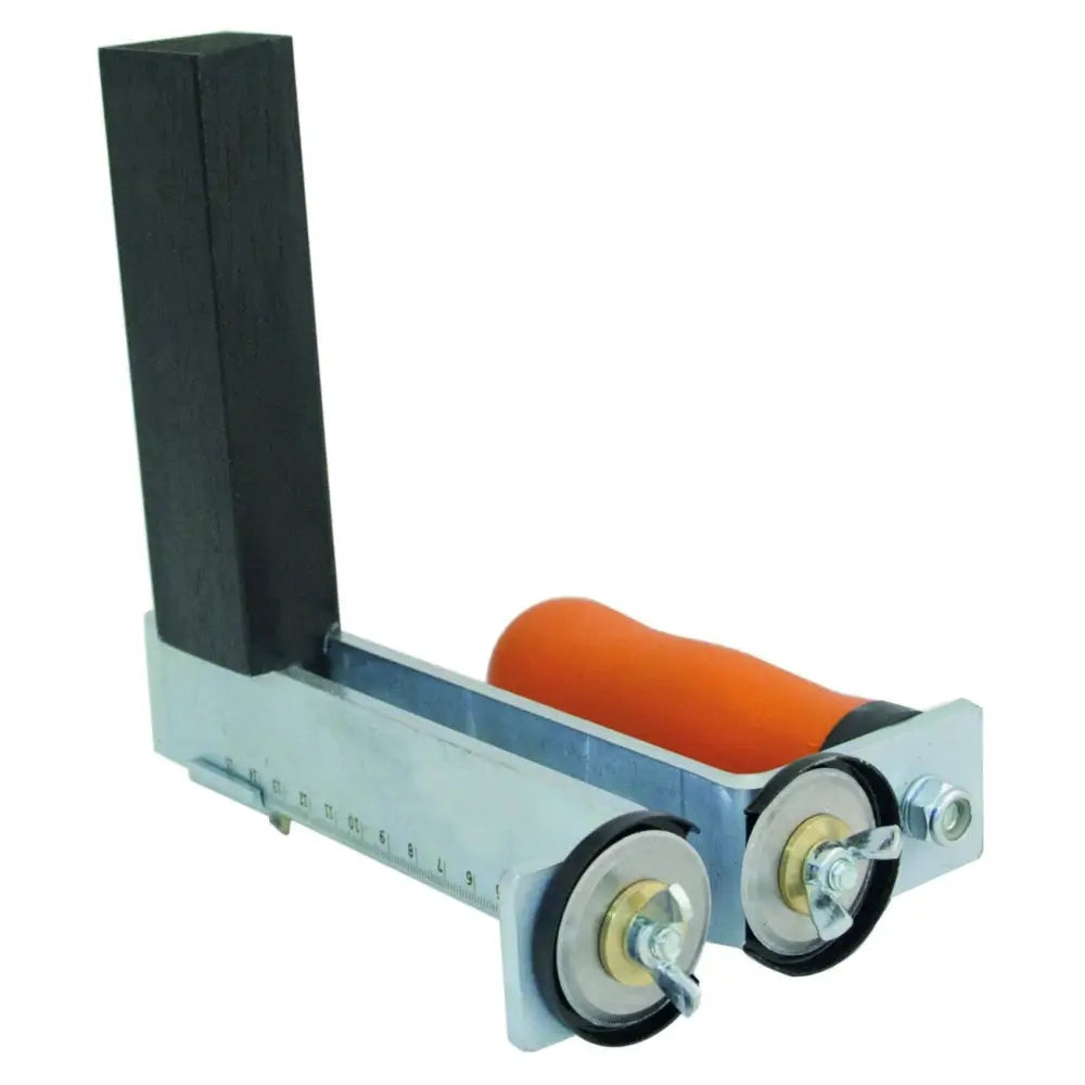 Edma Plac & Roll gipskantskärare med dubbla tandade knivtrissor som snabbt och effektivt skär både skivan och pappen från båda håll samtidigt vilket ger ett rent snitt som inte kräver någon efterbearbetning. Båda trissorna är individuellt justerbara beroende på skivans tjocklek. Steglöst inställ och fixerbar för att ta bort upp till 15 cm gips. Stödprofil och ergonomiskt tvåkomponentshandtag. Avsedd för 13-18 mm gipsskivor. SB-packad.