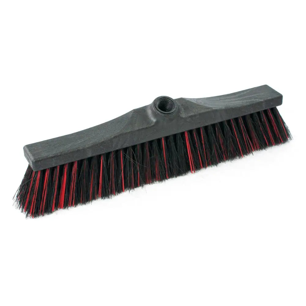 Plastrygg. Borst av PP-plast och cocosblandning. Slitstark borst lämplig för sopning av fin, medelgrov eller grov smuts på de flesta ytor, både torra och våta. Passar träskaft konat till Ø22 mm.