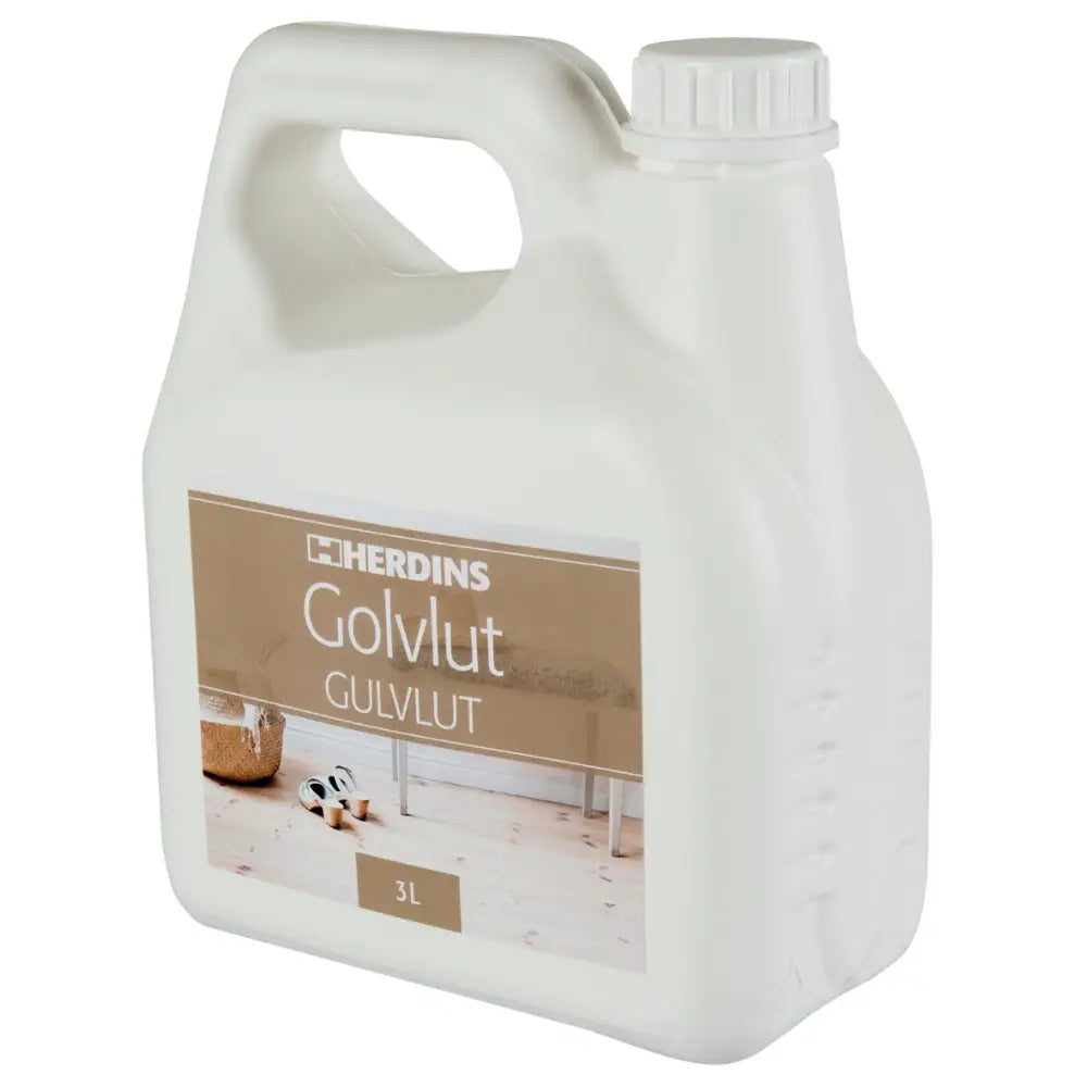 Herdins Golvlut används på obehandlade trägolv av gran eller furu. Behandlingen ger golvet en ljusare ton och förstärker den genuina träkänslan. Den bromsar också så kallad gulning och används alltid i kombination med Herdins Golvolja eller Golvsåpa. 1 liter lut räcker till minst 5 m².