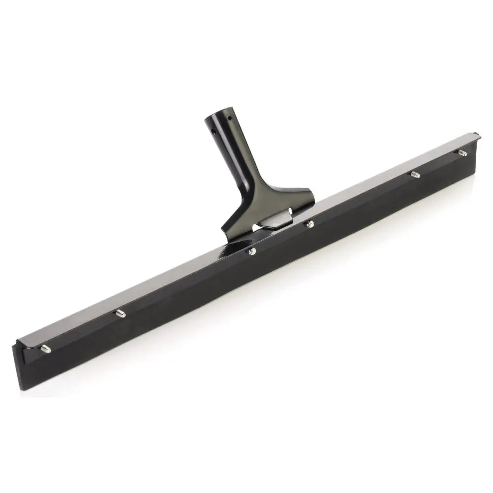 Golvraka med extra kraftig metallram och fäste. Enkelt blad av kompakt gummi. Skaftfäste som går att spänna åt. Passar skaft med Ø24 mm. Lämplig för att raka bort större volymer av t.ex. vatten, lera, slask och snö på släta ytor som betonggolv och asfalt. Används i miljöer som fabriker, byggarbetsplatser och inom jordbruk.