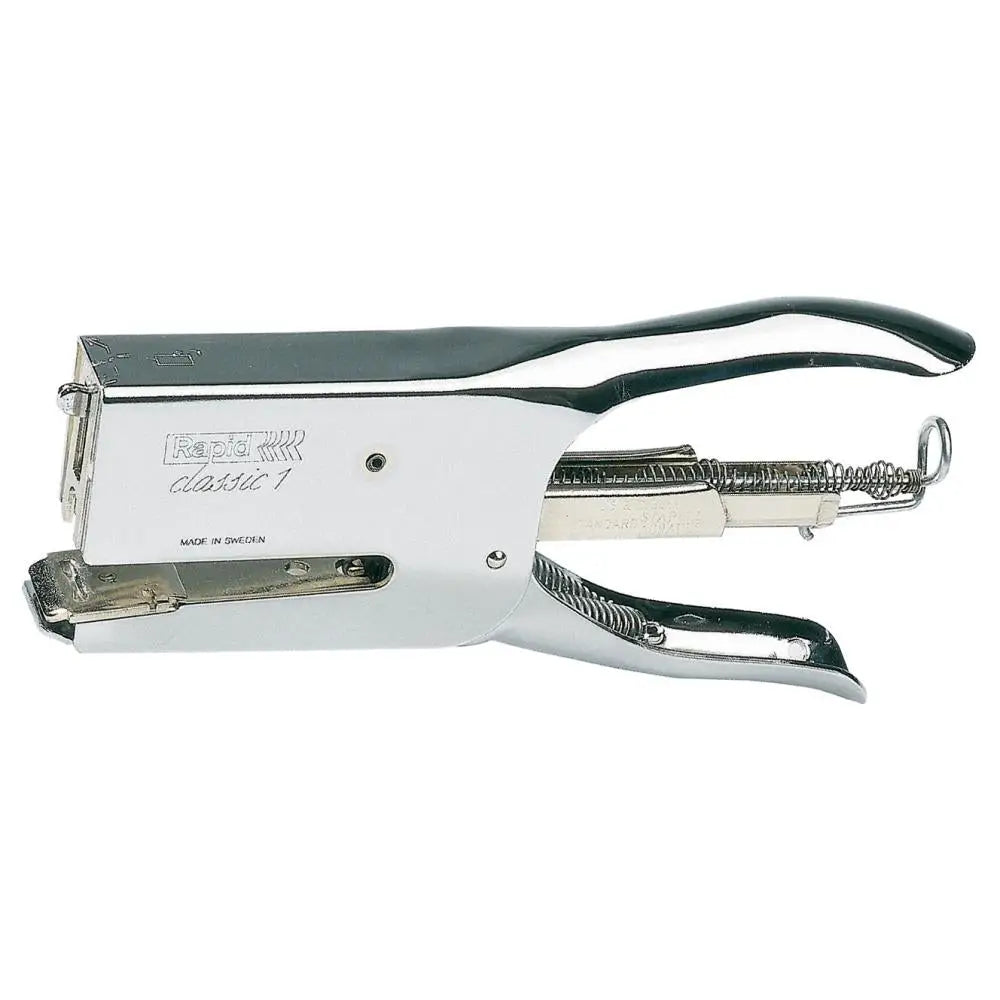 Häfttång med vändbart städ för nålhäftning.Passar utmärkt tillflorister, postrum, butiker, varuhus och kontor. Förkromad ur allergisynpunkt. Vändbart städ för nålhäftning. Häftar 40 ark.