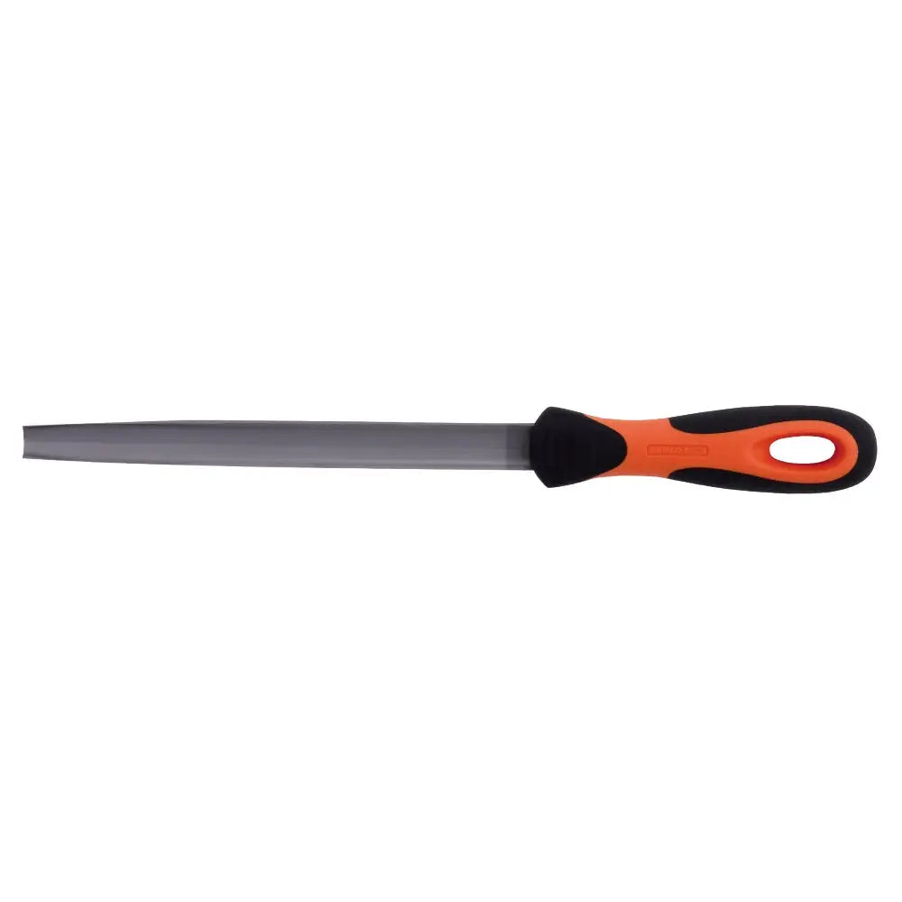 Filhandtag utvecklat enligt en vetenskaplig Ergo process. Halvrund fil för filning av konkava och plana ytor samt större hål. Passande för gradningsarbeten. Avsmalnande form.
