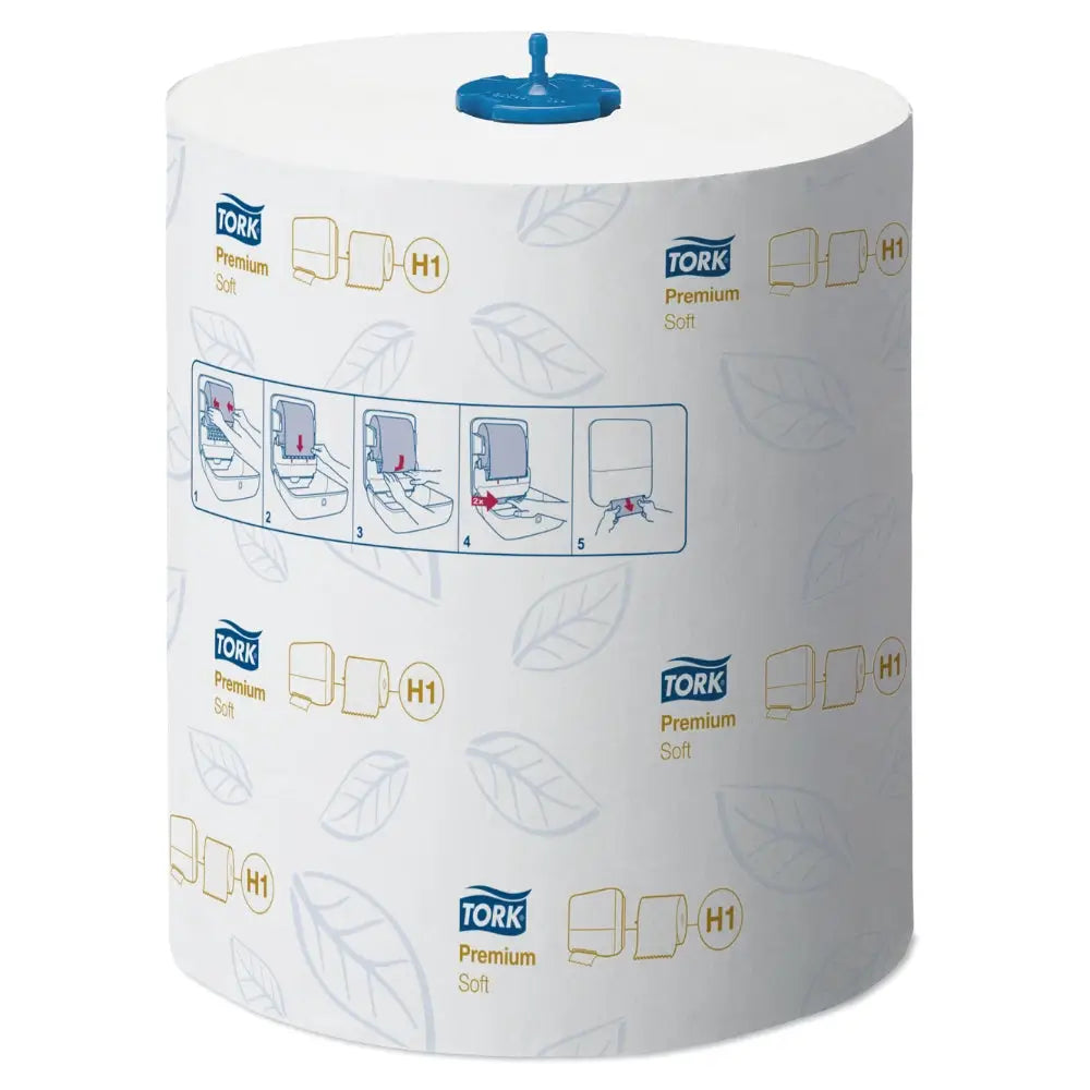 Tork Matic mjuk handduk på rulle passar utmärkt i högklassiga toalettutrymmen. De är mjuka och mönsterpräglade med ett snyggt blått löv. Handdukarna torkar händerna snabbt och noggrannt med hjälp av funktionen QuickDry. Rullarna passar i Tork Matic dispenser H1.