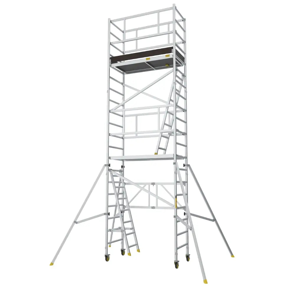 En aluminiumställning med ett mindre format och pris, för arbete på lite lägre höjd. Kan användas inomhus och på fast, slät mark utomhus.