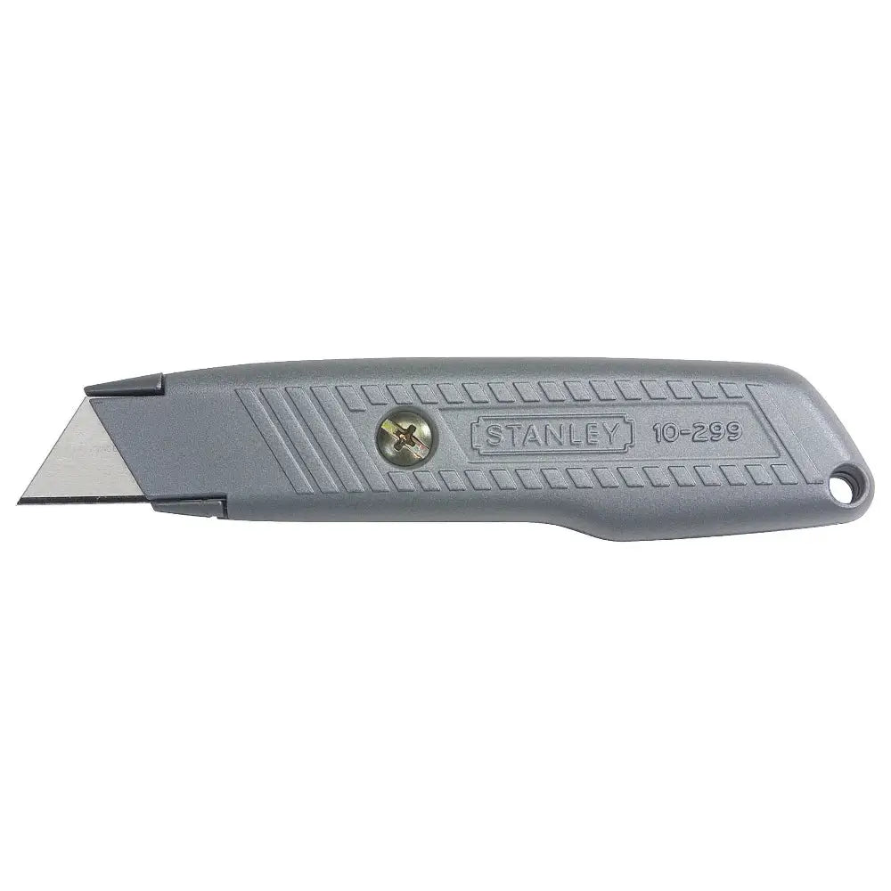 Lackerad metallkniv med räfflat handtag för bättre grepp. Patenterat Interlock® bladlåsnings-system for större säkerhet. Integrerad bladhållare. Komplett med 3 extra knivblad.