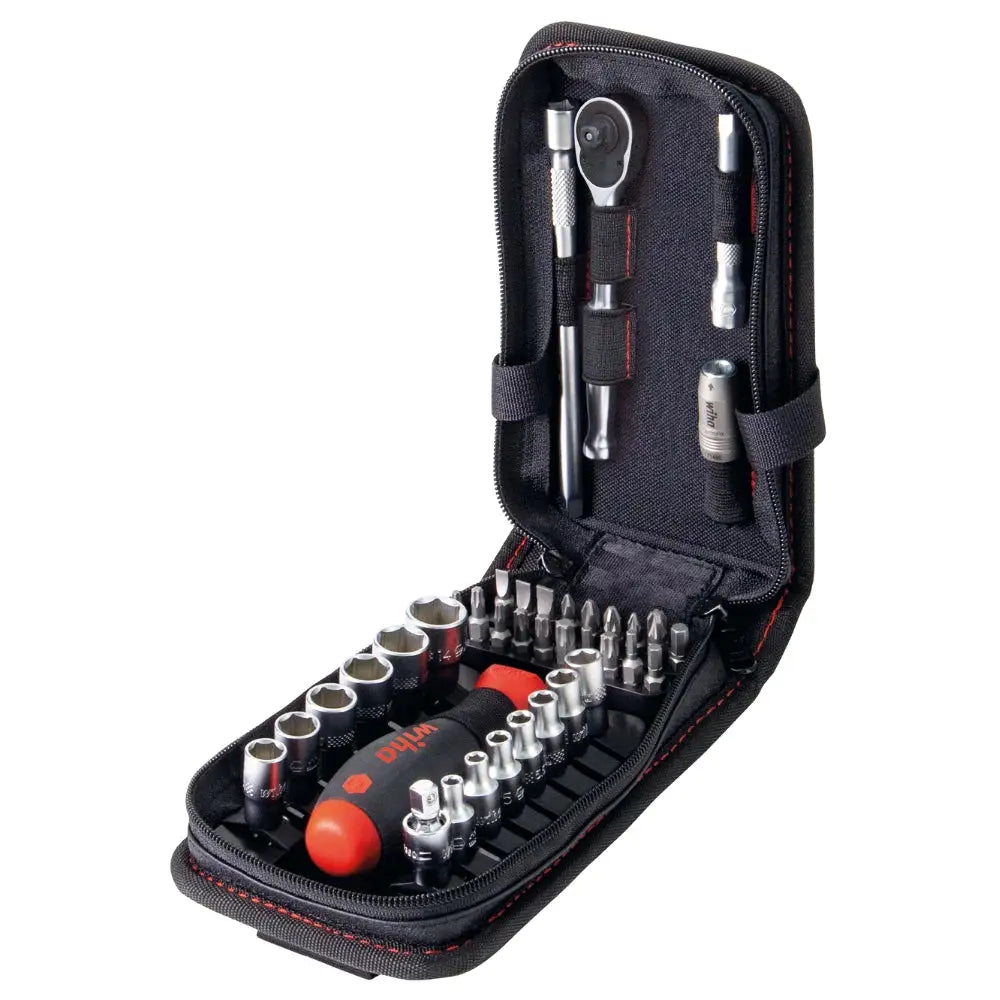 Hyls- och bitssats 1/4". 40 delar inkl. funktionsväska med bältesklämma. Tight åtskruvning och enkel öppning.