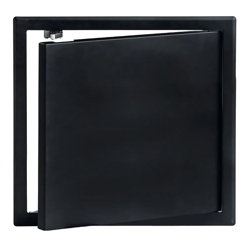 Matt pulverlackerad inspektionslucka. Består av ram, lucka och integrerade montagebleck. Luckan öppnas och stängs med ett lätt tryck. Passar vid skivtjocklek från 12,5 mm.