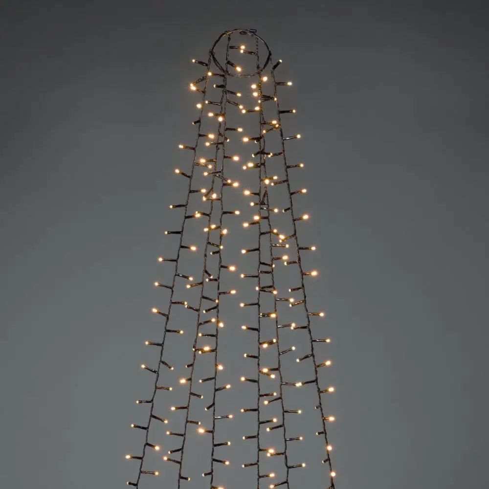 Julgransslinga, cluster, 6 slingor med amber LED. 6x110 LED. Svart kabel. Inkl. transformator med inbyggd timer, 8 timmar. Höjd 240 cm. Sladdlängd 500 cm. För utomhusbruk 30V/IP44.