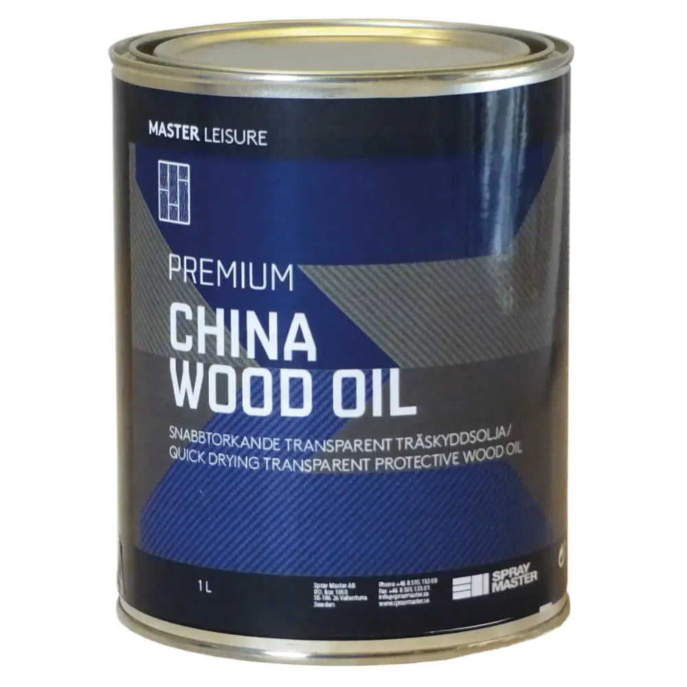 MASTER PREMIUM/CHINA OIL är baserad på kinesisk ”tung tree oil”. Professionell djupinträngande träolja med mycket högt oljeinnehåll för väderskyddsbehandling av såväl nytt som tidigare impregnerat trä, även för exotiska träslag med fet yta. Lämplig för såväl första behandling som årligt underhåll av t.ex. trädgårdsmöbler, trall virke, fönster och fönsterramar, fasader och snickerier. Även lämplig för traditionellt svåra träslag som teak och mahogny i marin miljö, såväl på däck som inne i båten.